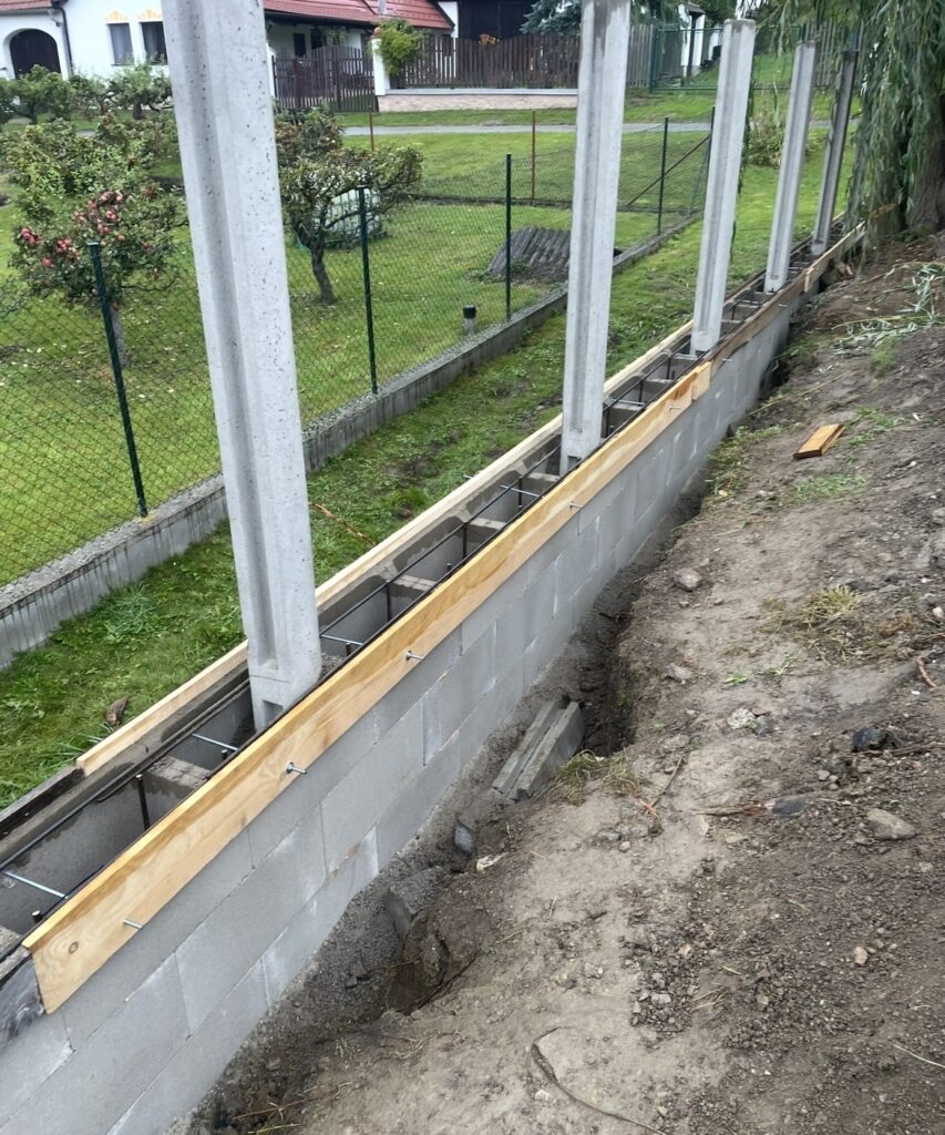 Robustní a velmi pevné řešení vhodné i pro velké výšky. Používáme bednicí tvárnice nebo monolitický beton, vždy s důrazem na kvalitní základ a správné vyztužení. Výhodou je vysoká stabilita a možnost finálního vzhledu podle přání – hladký beton, štípané bloky, omítka nebo obklad.